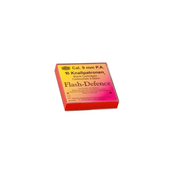 Caja de 10 municiones Flash Defense de 9 mm PAK para PISTOLAS